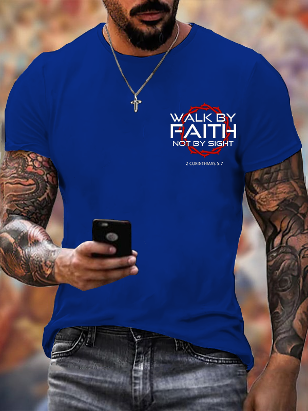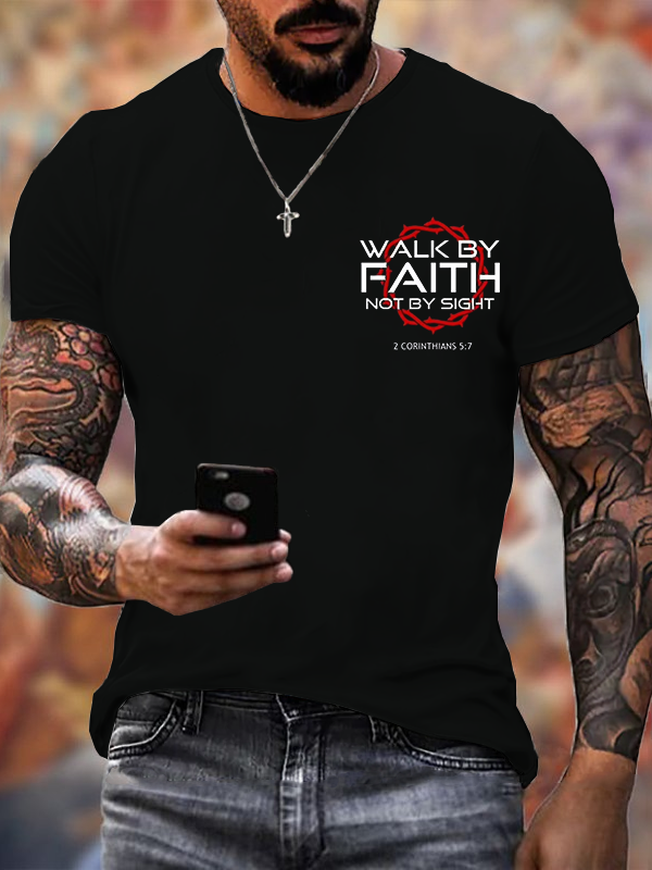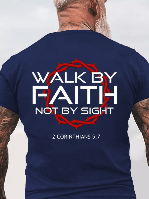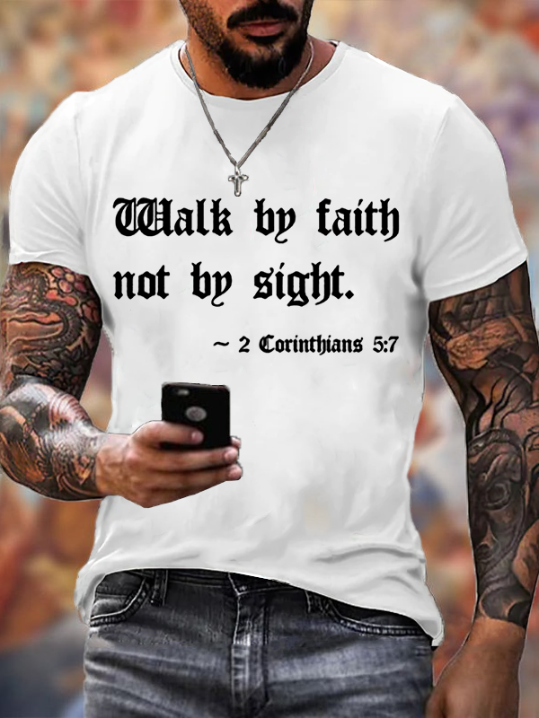 Walk 2 Corinthians 5:7 Jesus God Christian Cotton T-Shirt