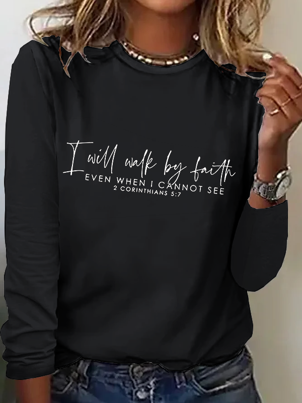 I Will Walk By Faith. Even When I Cannot See: 2 Corinthians 5:7 Women's Long Sleeve T-Shirt