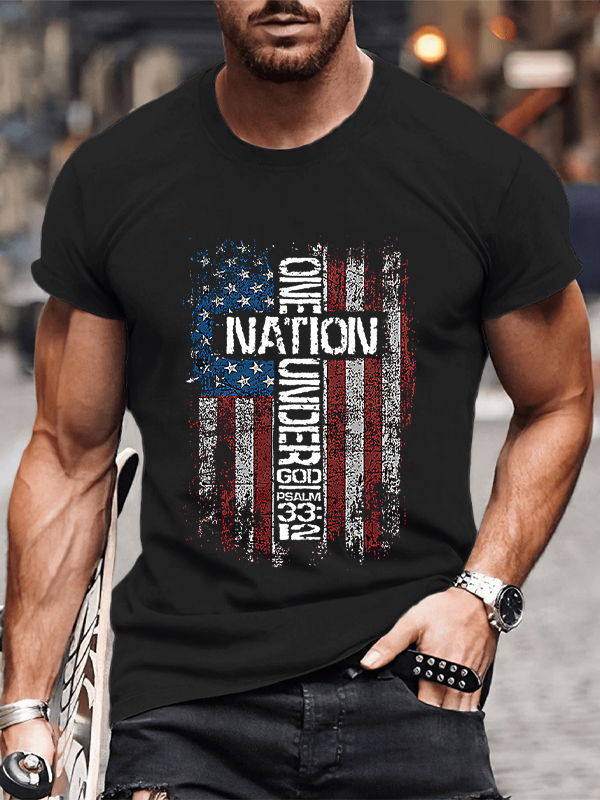 One Nation Under God Cross Jesus God Christian Cotton T-Shirt