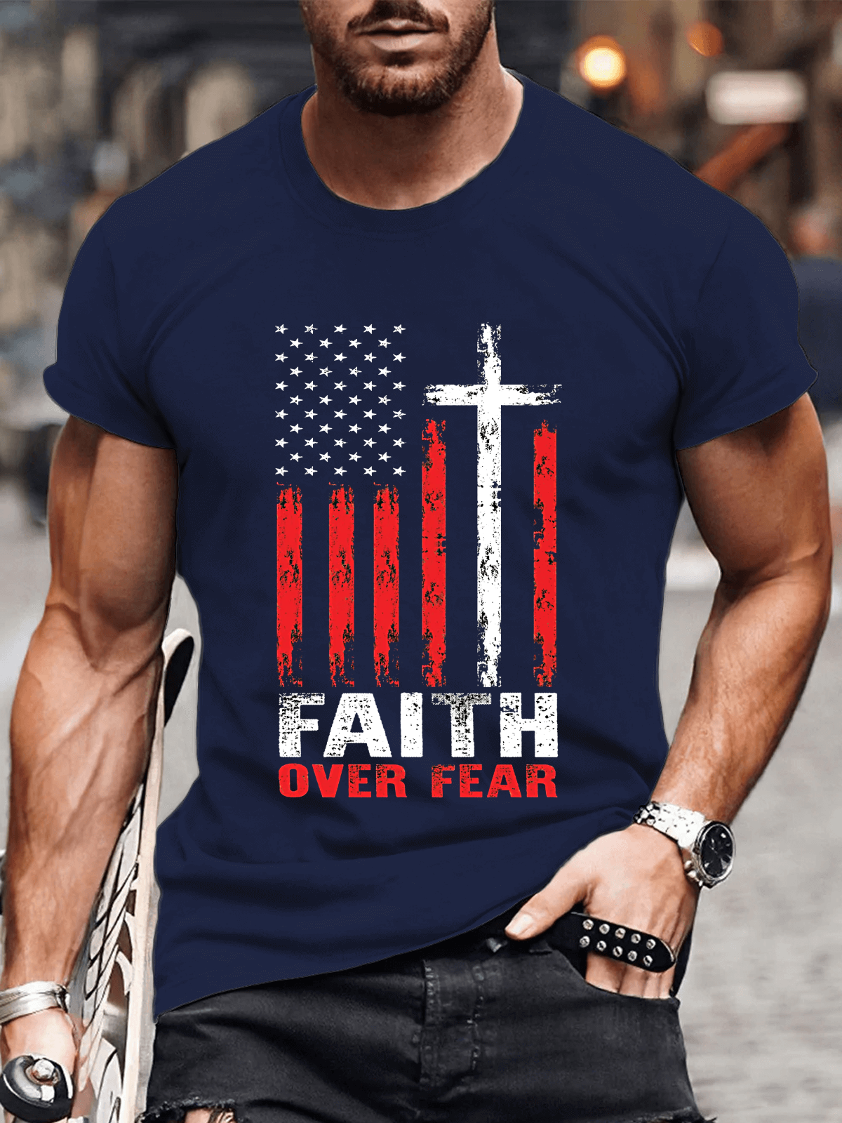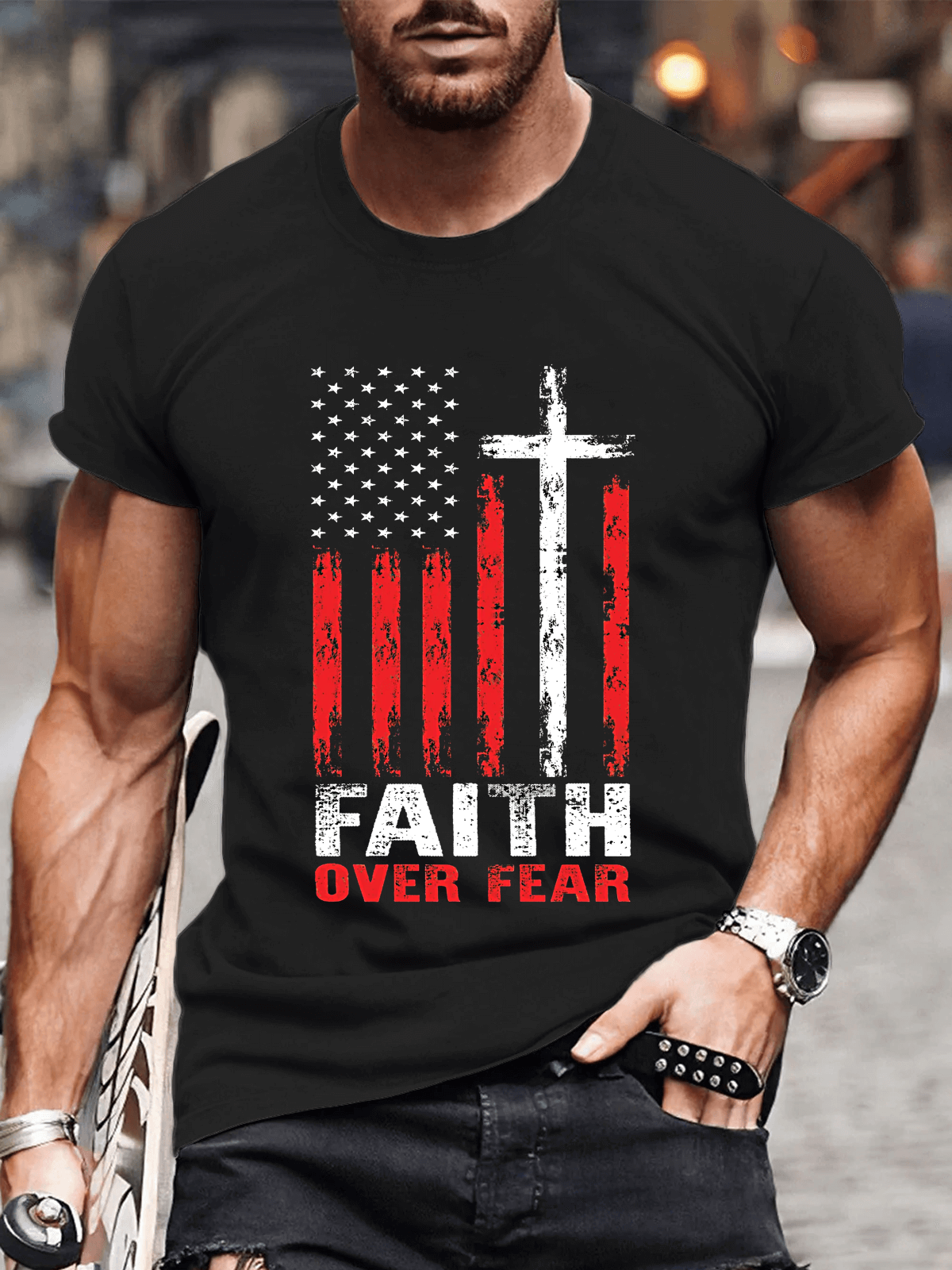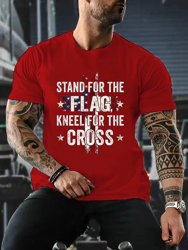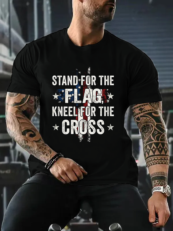 Stand For The Flag Kneel For The Cross Jesus God Christian Cotton T-Shirt