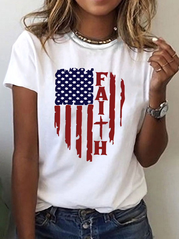 US American Flag In God We Trust Jesus God Christian Cotton T-Shirt