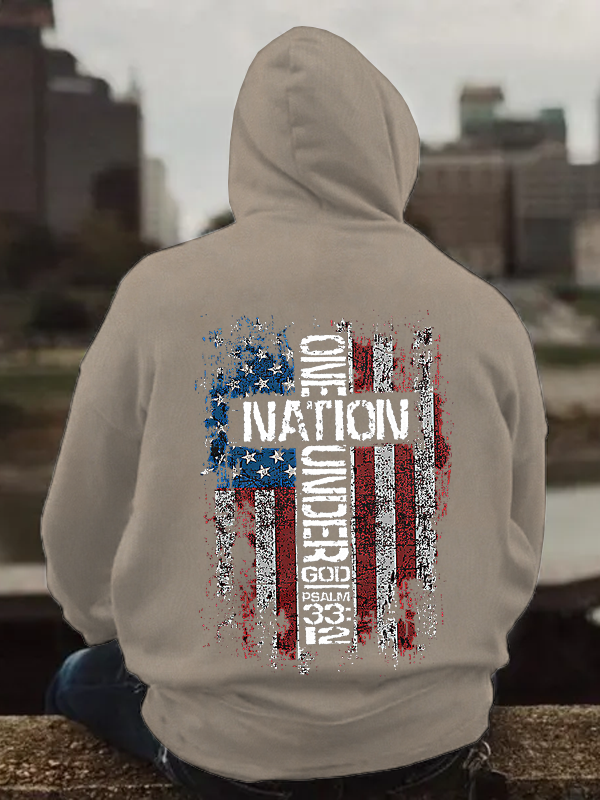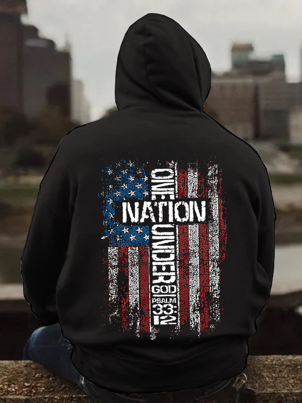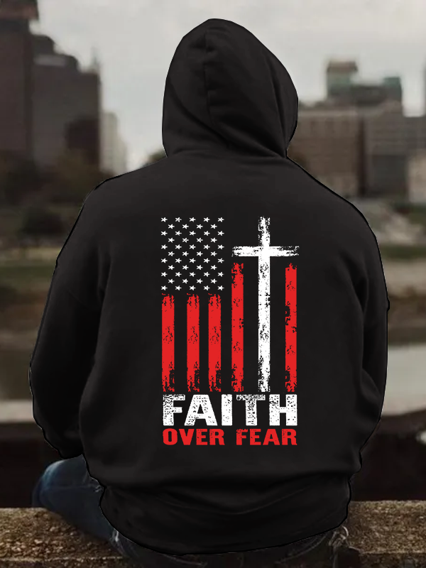 Faith Flag Cross Print Jesus God Christian Washed Hoodie