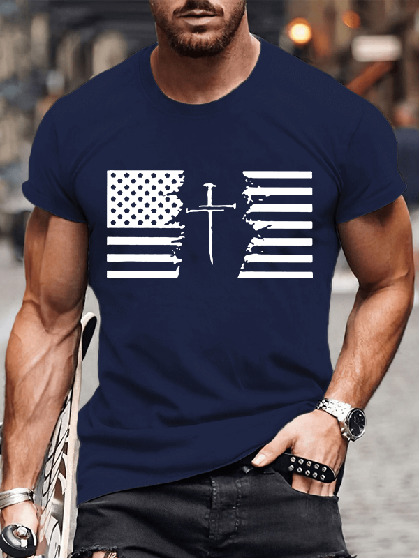 Tattered Flag Jesus God Christian Simple Resort Casual Shirt