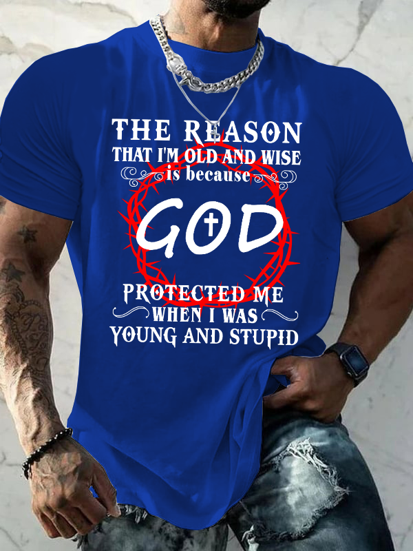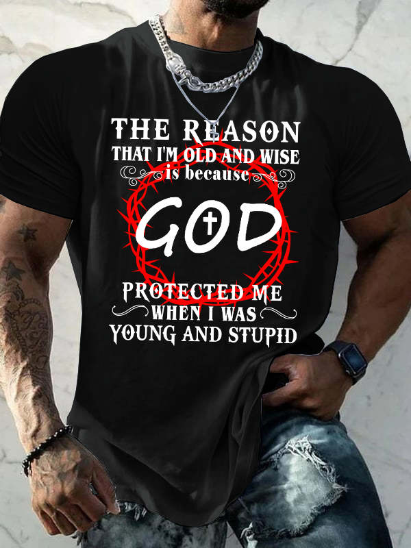 The Reason I'm Old And Wise Is Because God Protected Me When I Was Young And Stupid Christian Cotton T-shirt