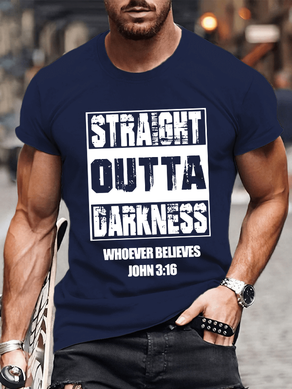 Straight Outta Darkness Whoever Believes John 3:16 Christian Cotton T-Shirt