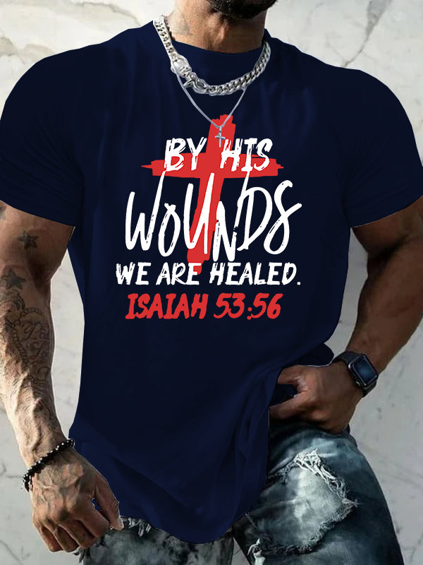 By His Wounds We Are Healed Jesus God Christian Cotton T-Shirt