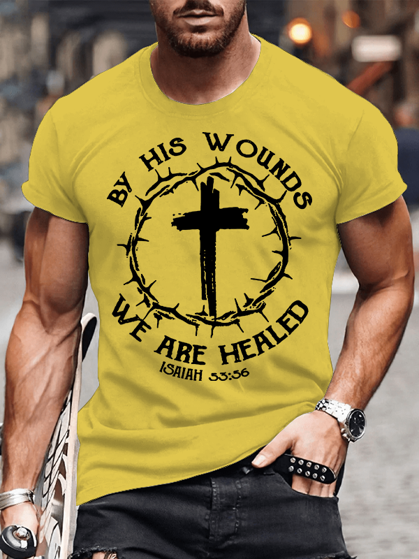 By His Wounds We Are Healed Christian Cotton T-Shirt