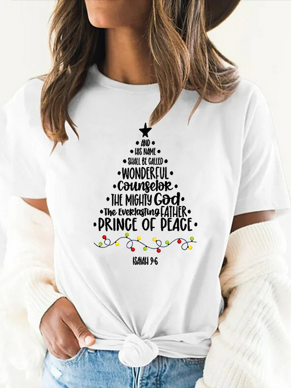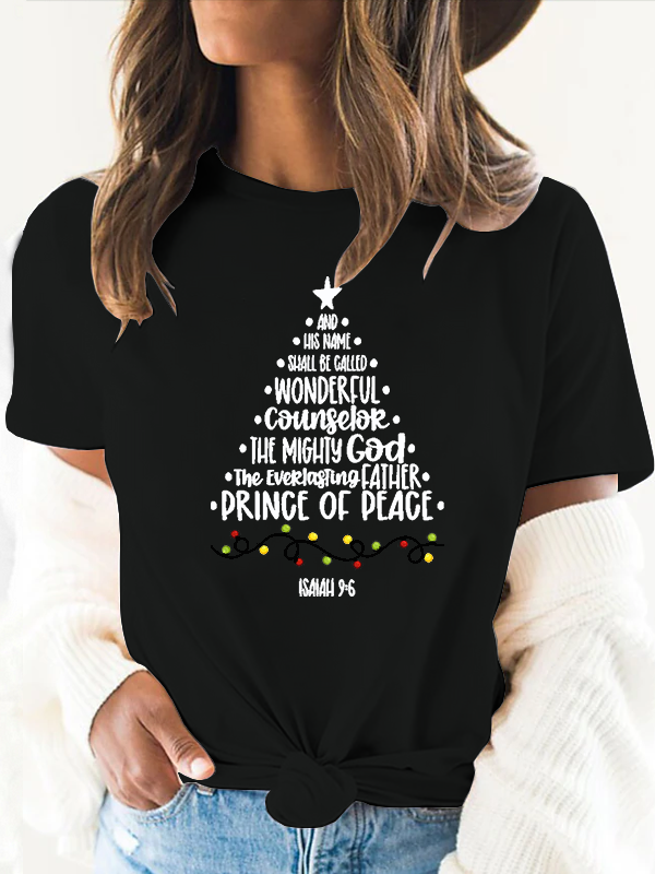 Christmas Tree Jesus God Christian Cotton T-Shirt