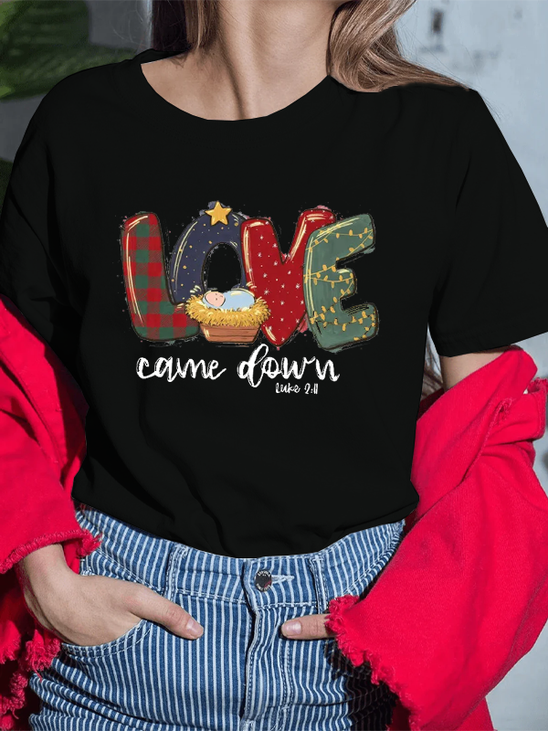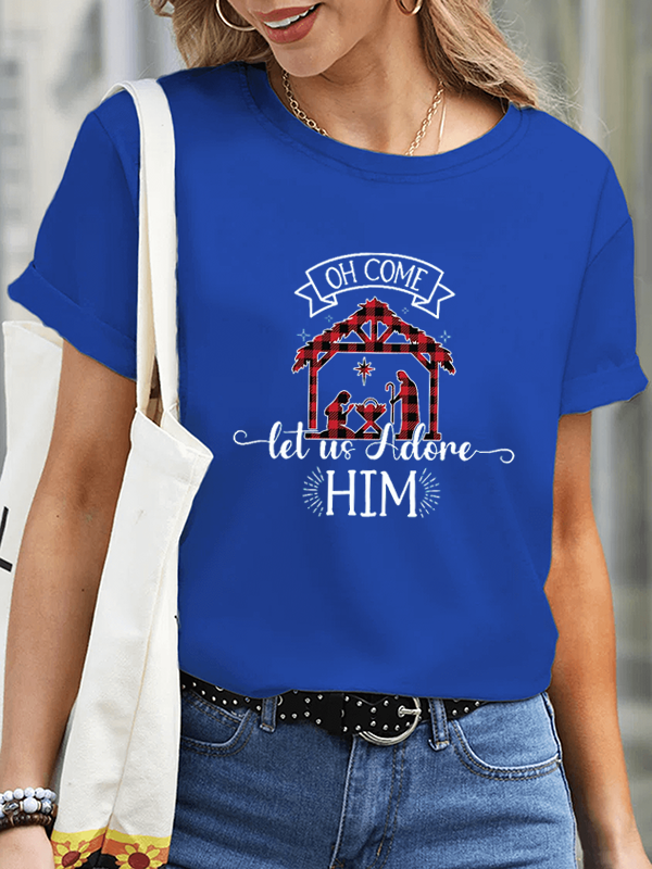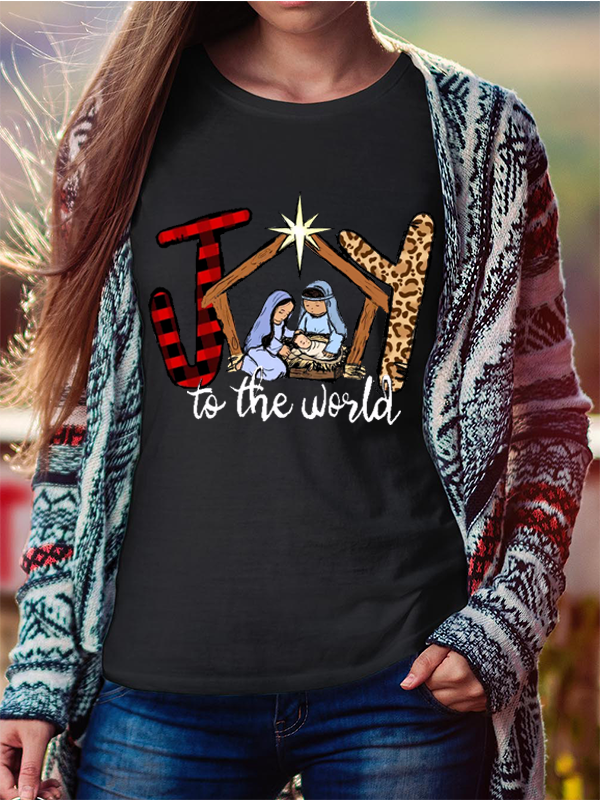 Retro Christmas Cross Jesus God Christian Cotton T-Shirt