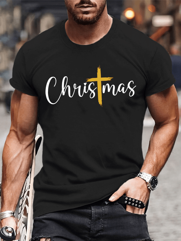 Christmas Cross Jesus God Christian Cotton T-Shirt