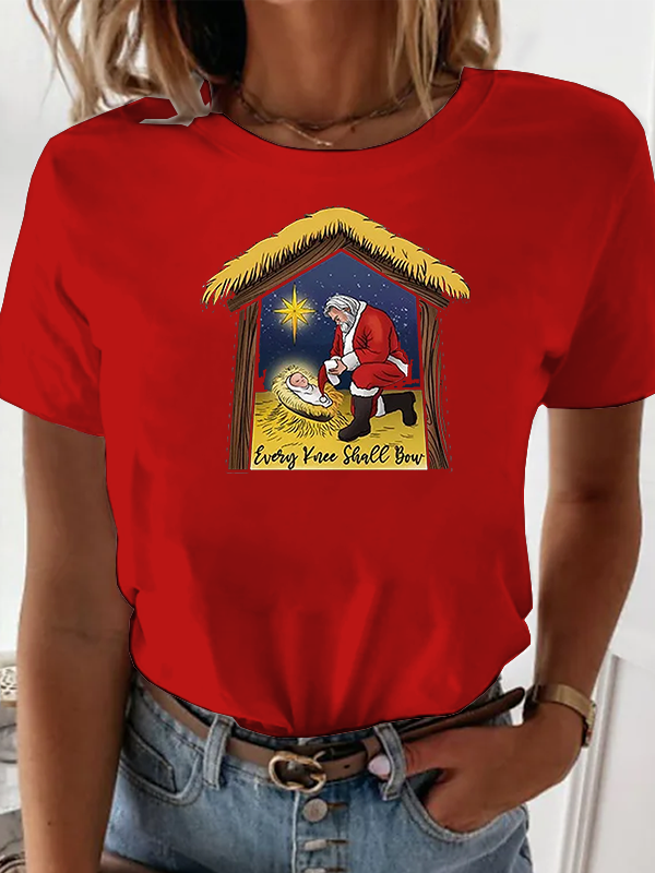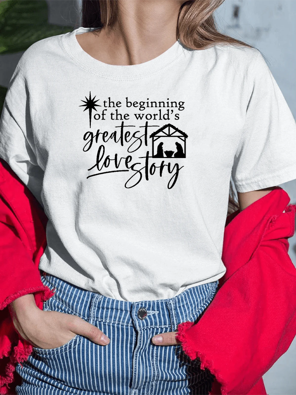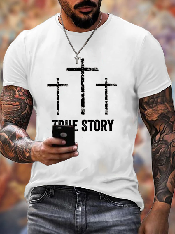 Religious Christmas True Story Nativity Scene Cross Christian Cotton T-Shirt