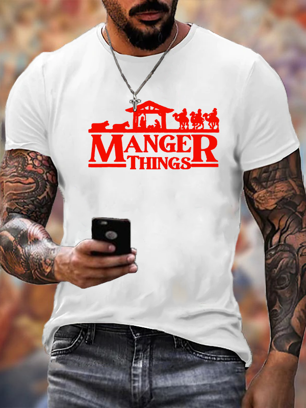Manger Things Nativity Christmas Christian Cotton T-Shirt