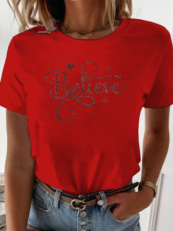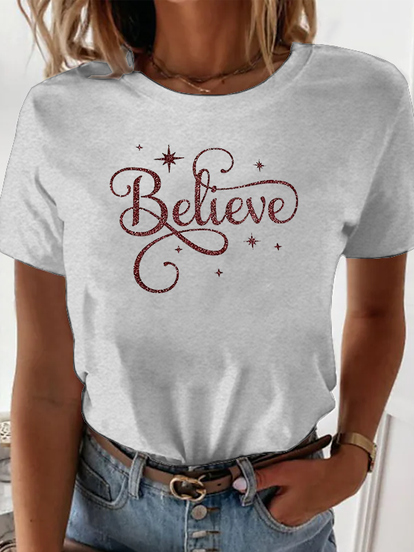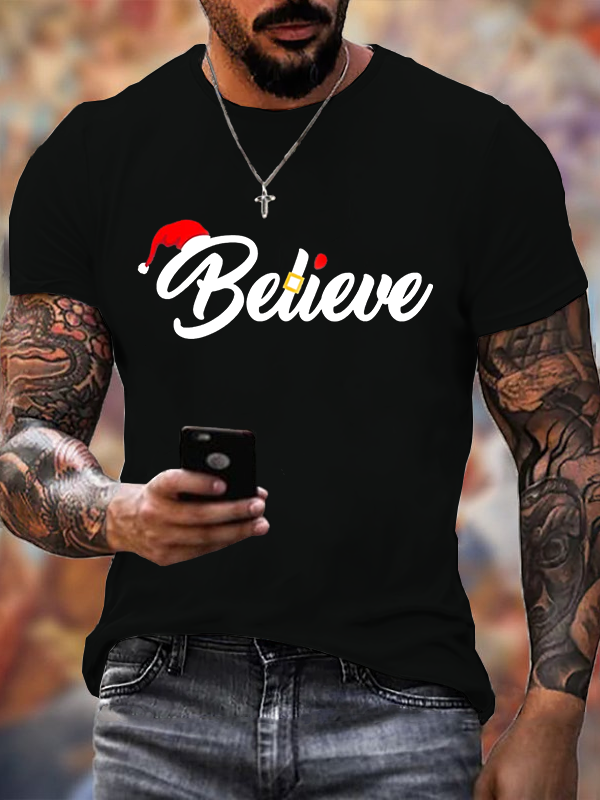 Believe Merry Christmas Santa Hat Christian Faith Cotton T-Shirt