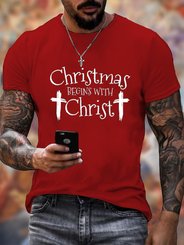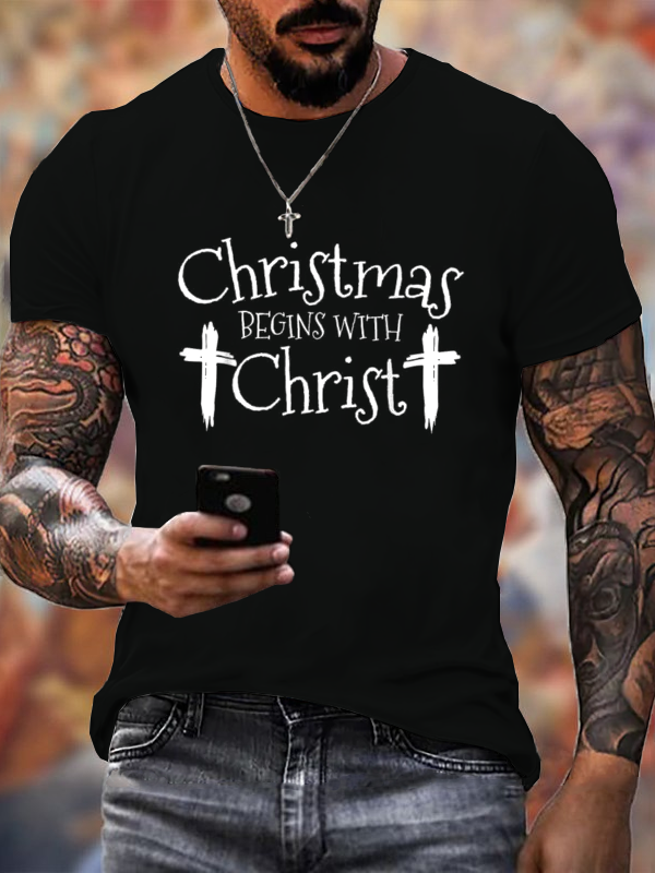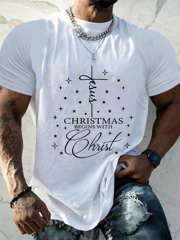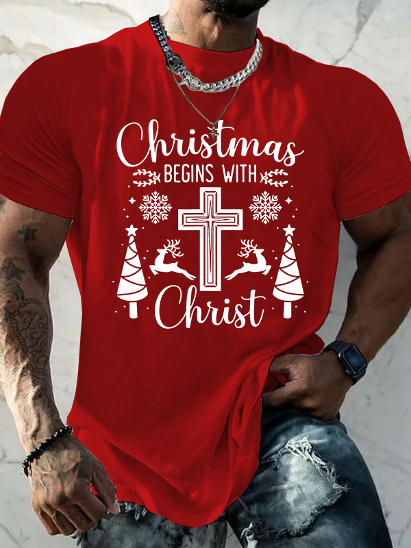 Jesus Christmas Begins With Christ Christian Christmas Cotton T-Shirt