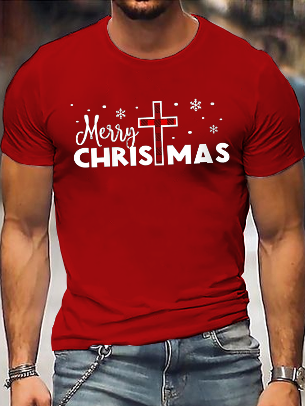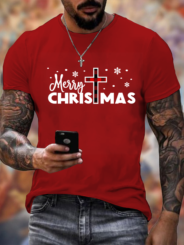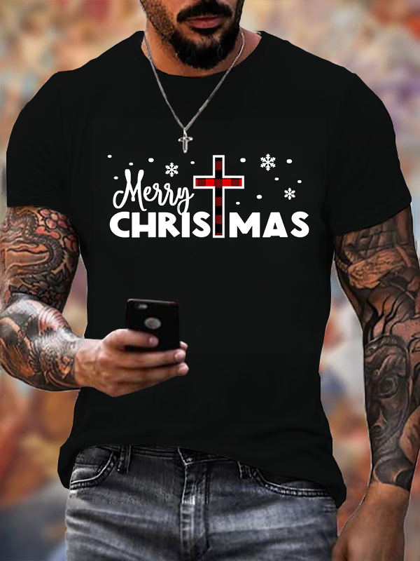 Merry Christmas-Christmas Christian Cross Cotton T-Shirt