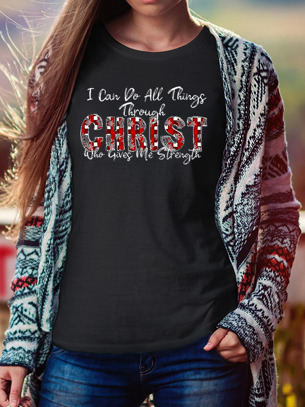 Buffalo Plaid Merry Christmas Christian Cross Cotton T-Shirt