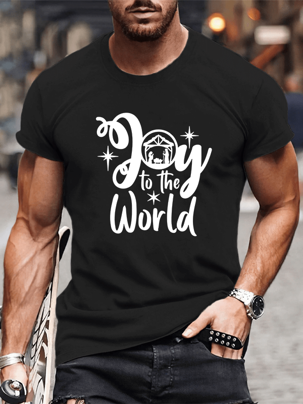 Joy To The World Nativity Scene Xmas Christmas Christian Cotton T-Shirt