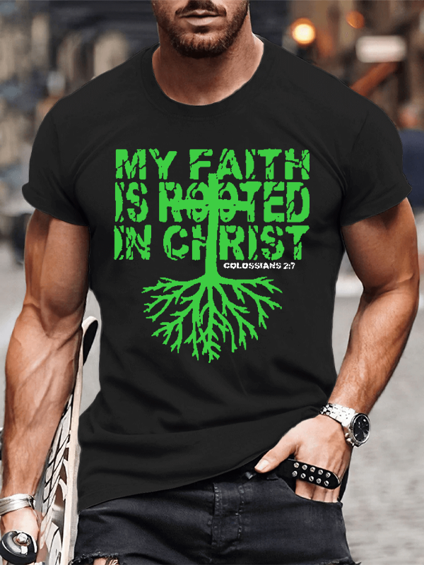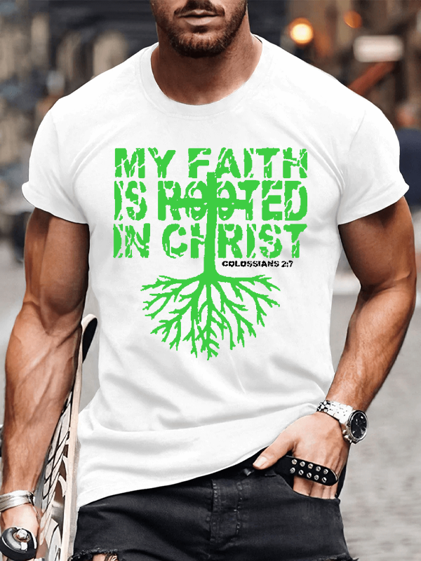 My Faith Is Rooted In Christ Colossians 2: 7 Christian Cotton T-Shirt