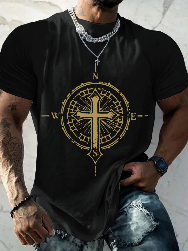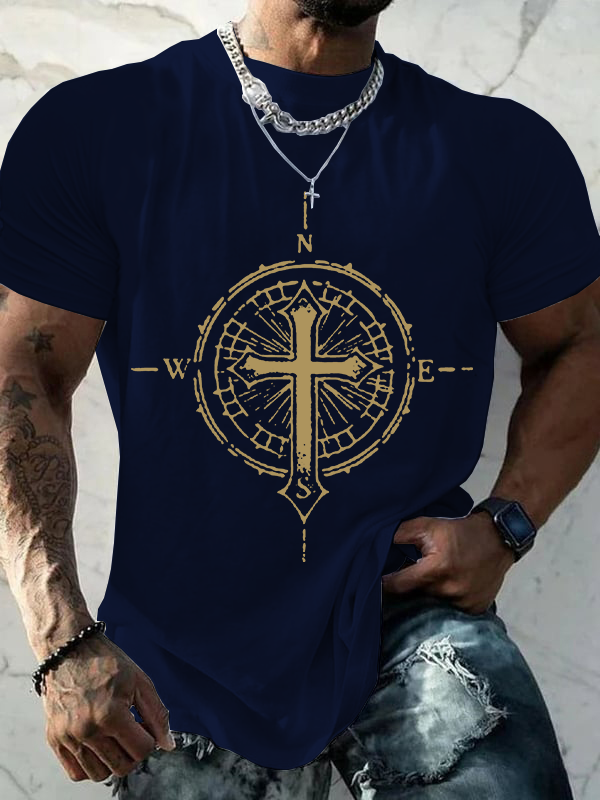 Cross Compass Jesus God Christian Cotton T-Shirt