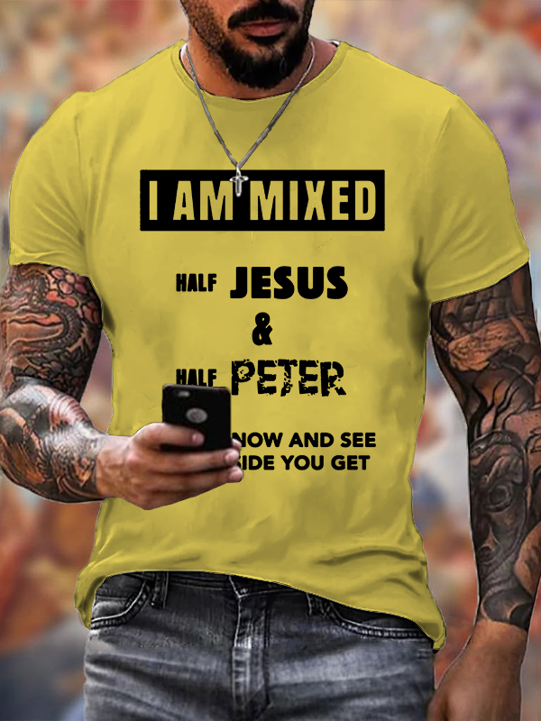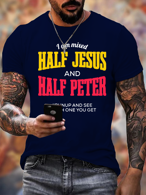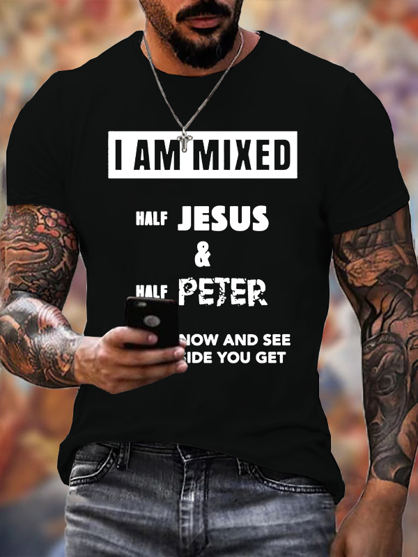 I Am Mixed Half Jesus And Half Peter Jesus God Christian Cotton T-Shirt