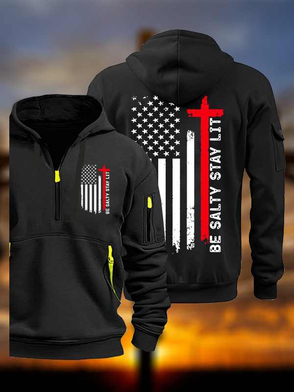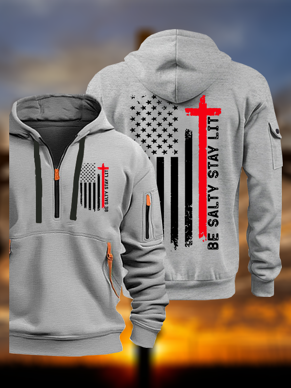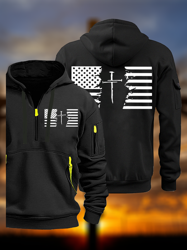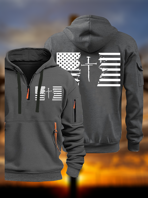 Cross Flag Jesus God Christian Pocket Zipper Hoodies