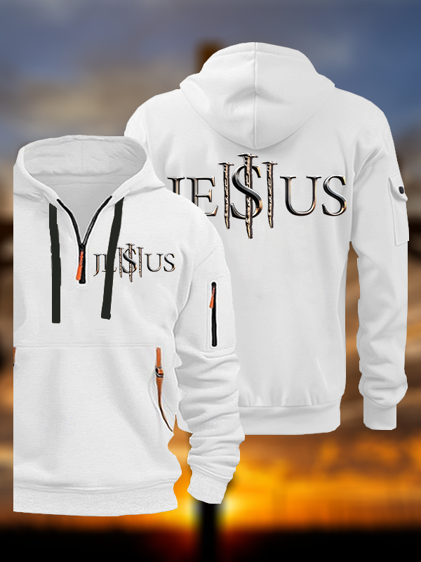 Casual Faith God Alphabet Printed Jesus God Christian Pocket Zipper Hoodies