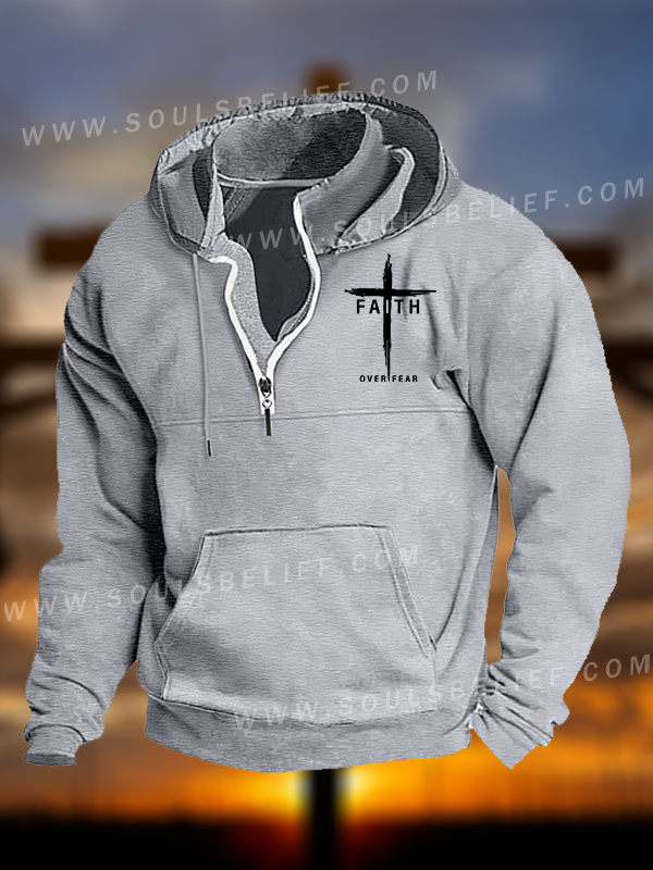 Faith Over Fear Cross Jesus God Christian Pocket Zipper Hoodies