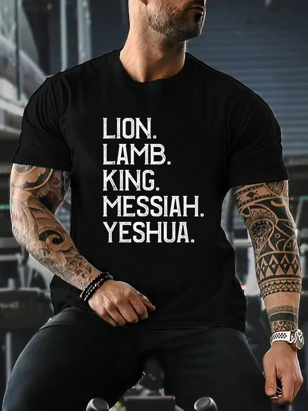 Lion And The Lamb Jesus God Christian Cotton T-Shirt
