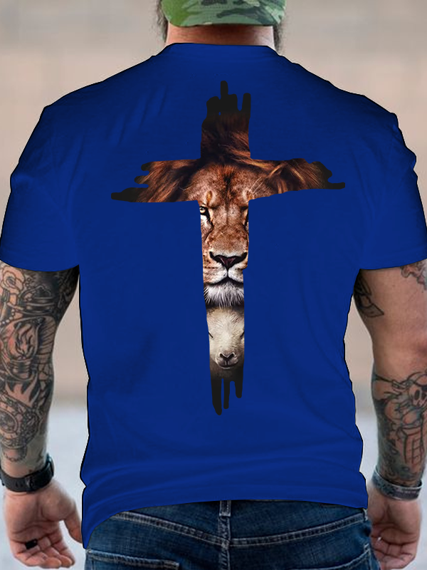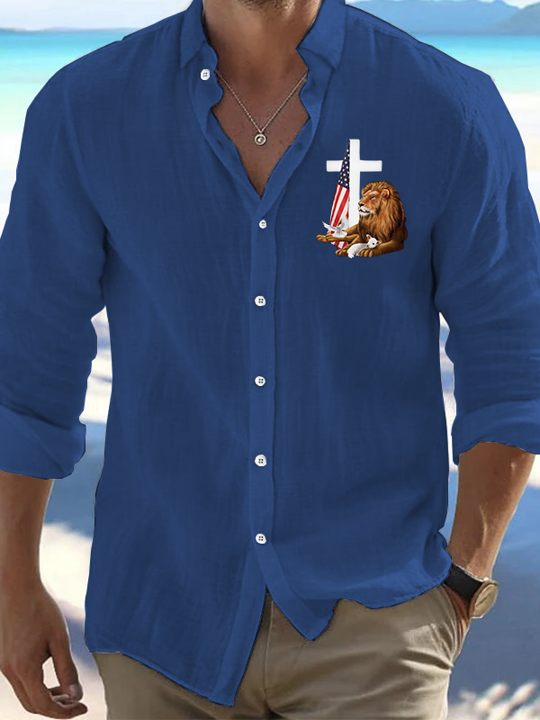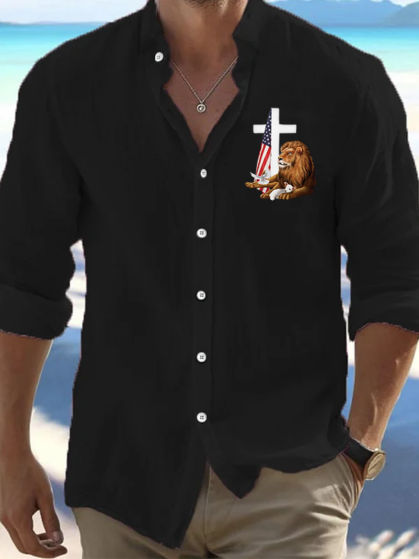 Men's Lion And Lamb Cross Simple Resort Casual Shirt