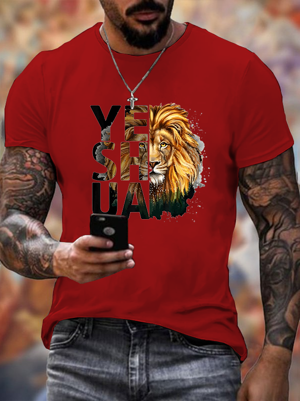 Yeshua Lion Jesus God Christian Premium Mercerized Cotton Tee