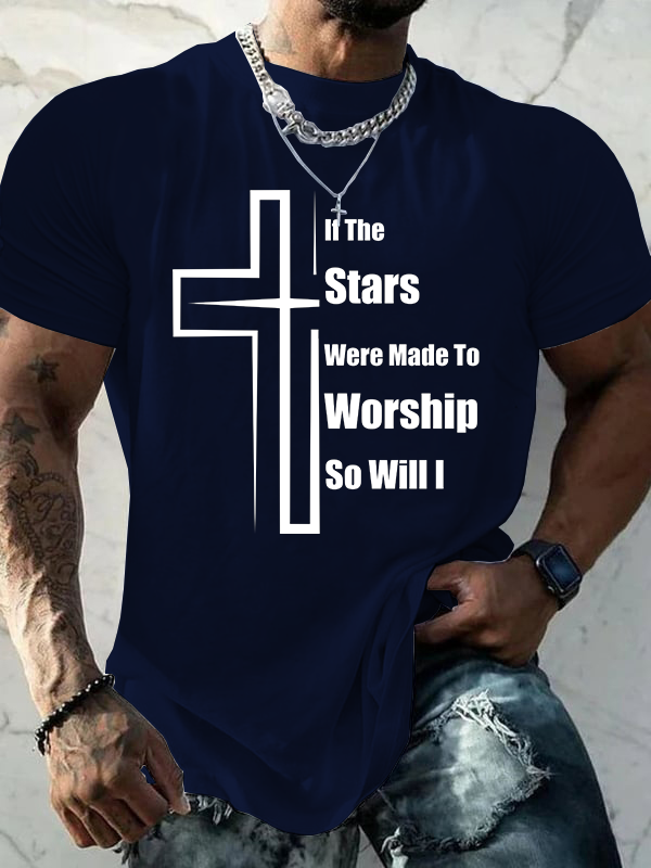 If The Stars Were Made To Worship So Will I Christian Cotton T-Shirt