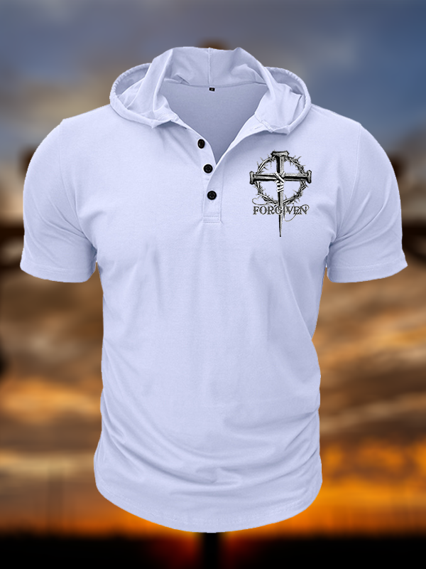 Cross Forgiven Hooded Henley T Shirt