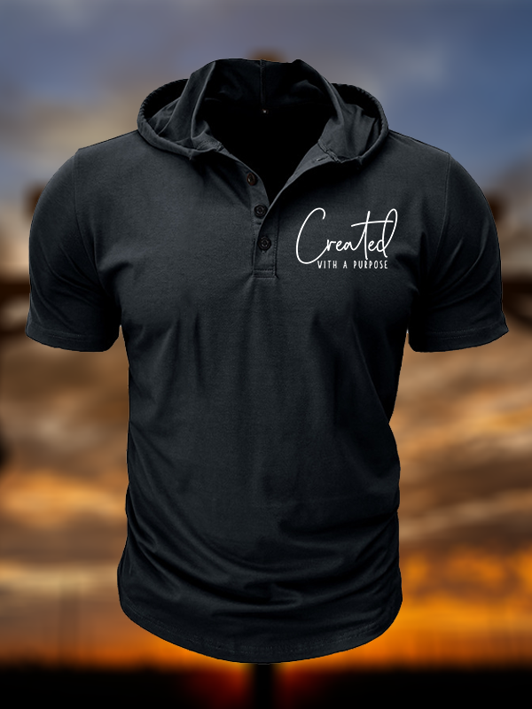 Dad, Husband, Man Of God Hooded Henley T Shirt