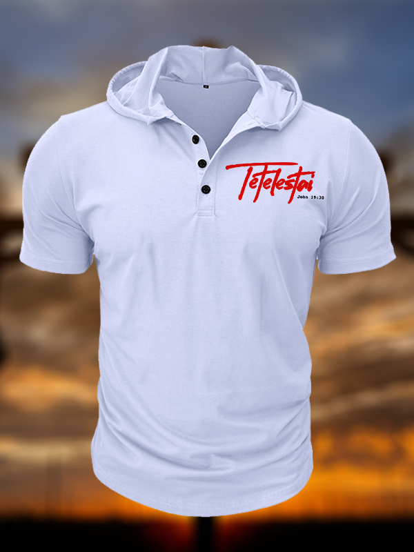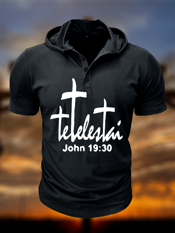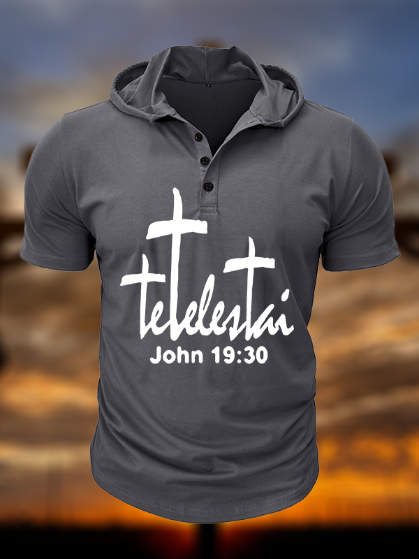Tetelestai John 19 : 30 Christian Hooded Henley T Shirt