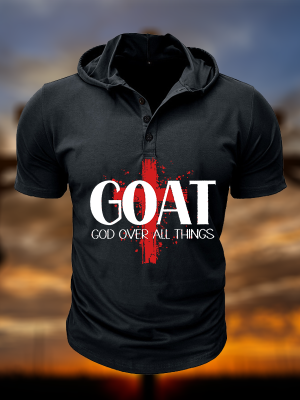 Goat God Over All Things Christian Hooded Henley T Shirt
