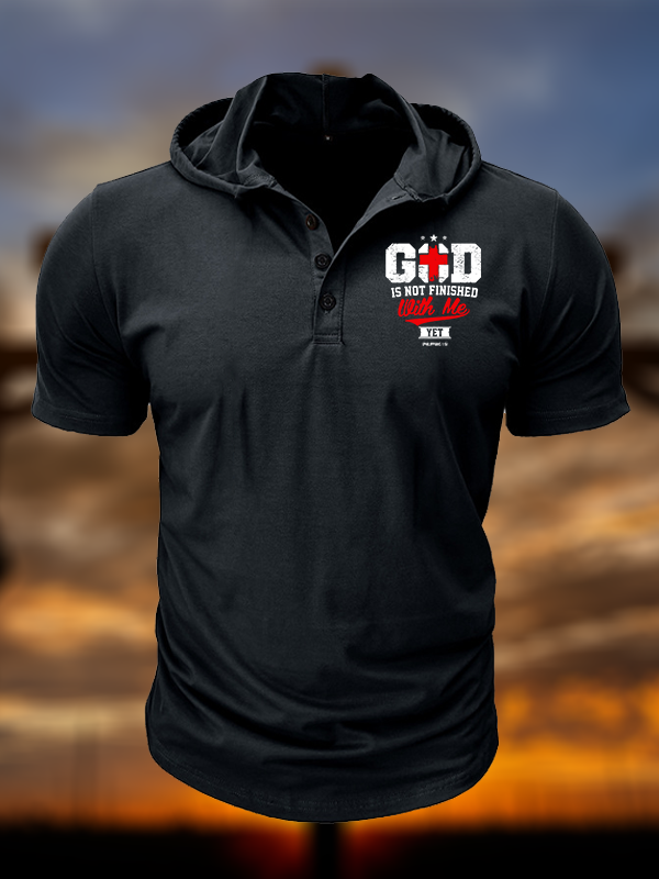 God Is Not Finished With Me Philippians 1:5 Hooded Henley T Shirt