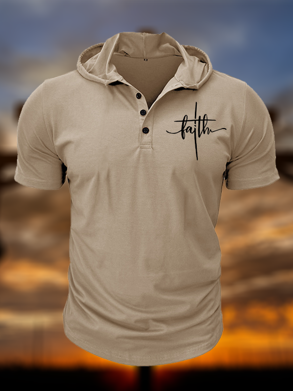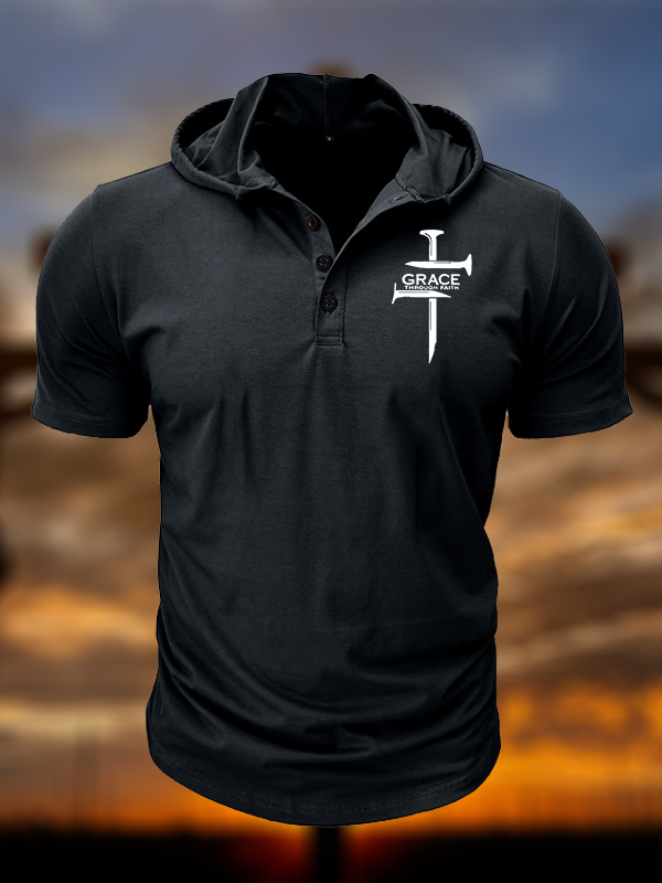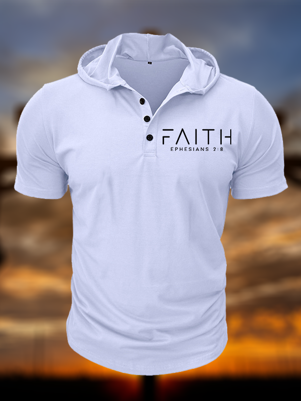 Faith Ephesians 2:8 Hooded Henley T Shirt