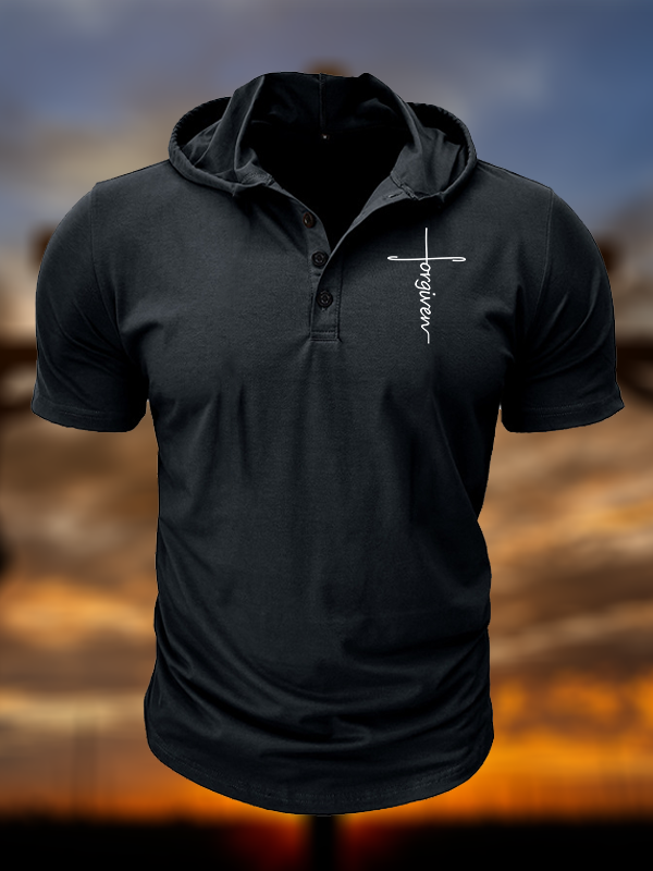 Tetelestai John 19:30 Christian Hooded Henley T Shirt