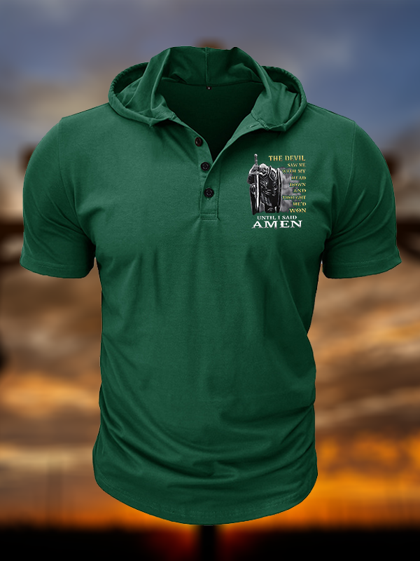 The Devil Saw Me with My Head Down and Thought He'd Won Until I Said Amen Hooded Henley T Shirt