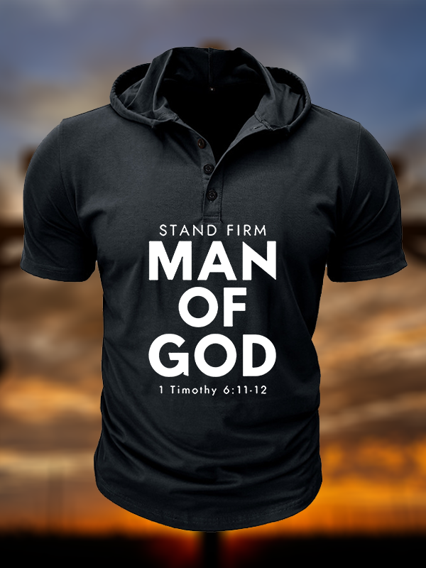 Man of God 1 Timothy 6:11-12 Christian Hooded Henley T Shirt