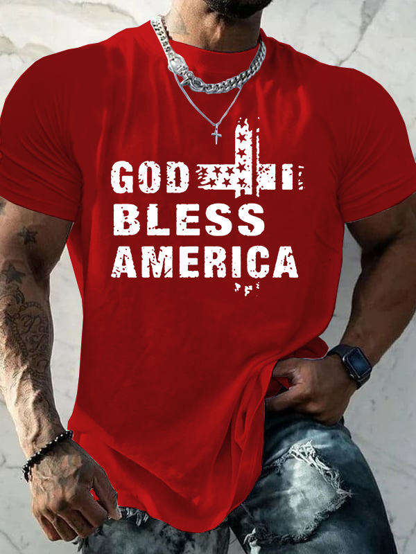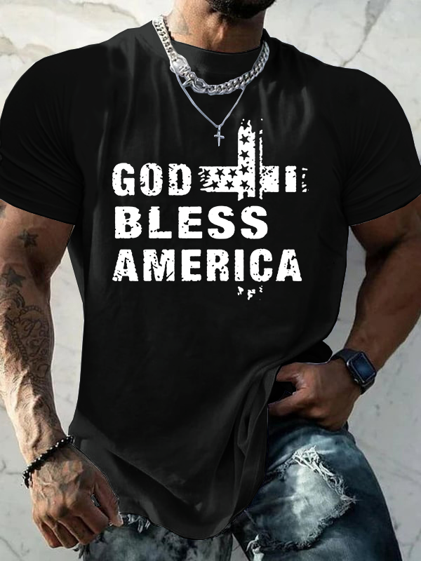 God Bless America Cross Jesus God Christian Cotton T-Shirt