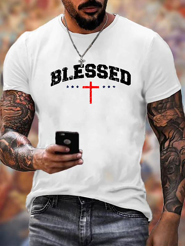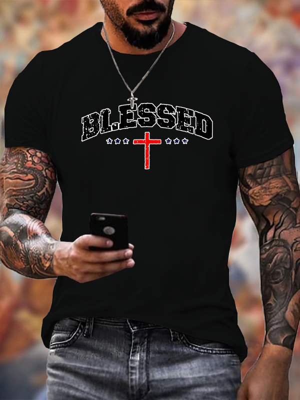 Blessed Cross Jesus God Christian Cotton T-Shirt