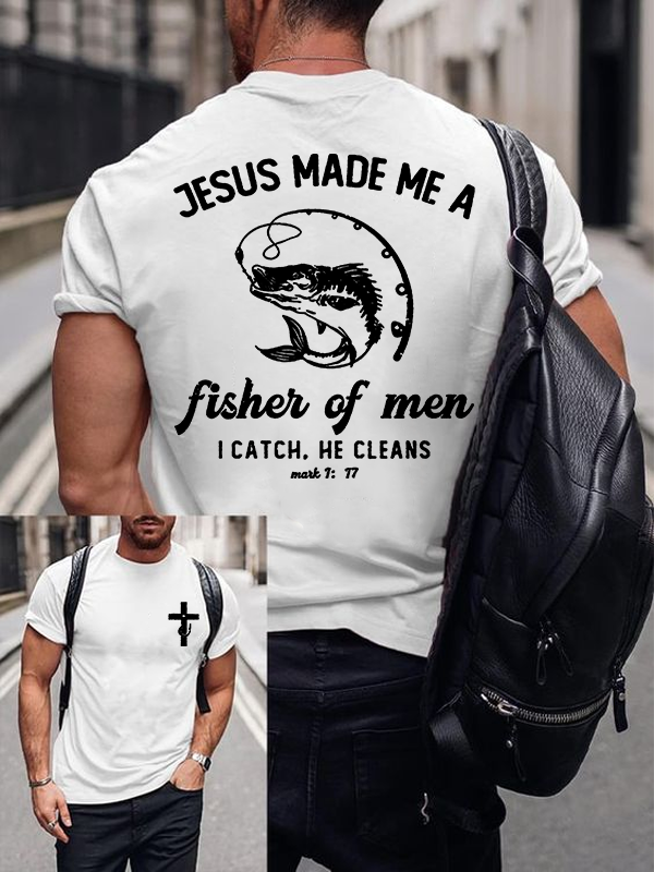 Fisher of Men Cross Jesus God Christian Cotton T-Shirt