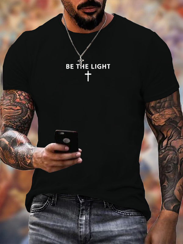 Be The Light Cross Jesus God Christian Cotton T-Shirt