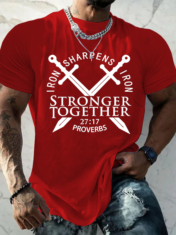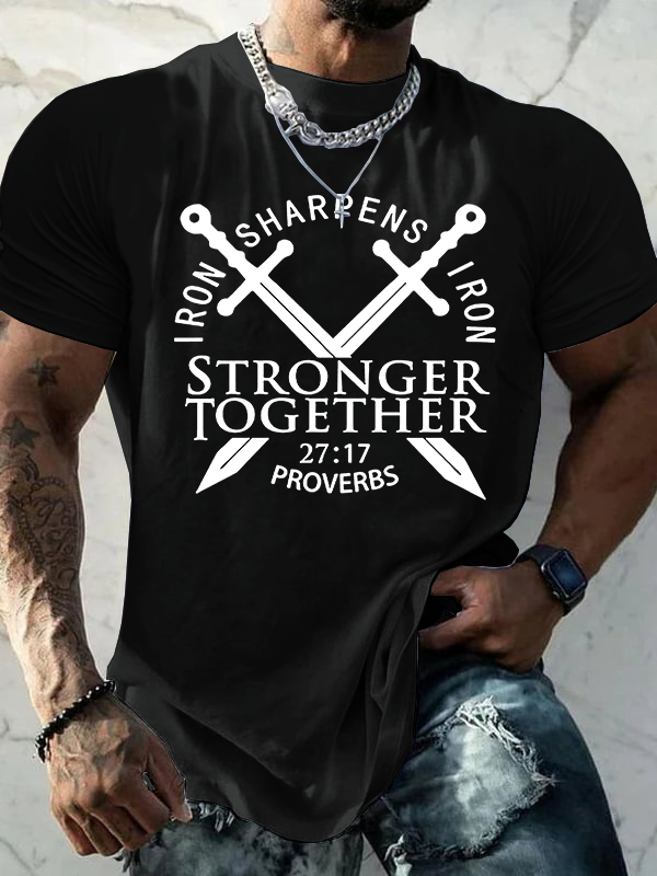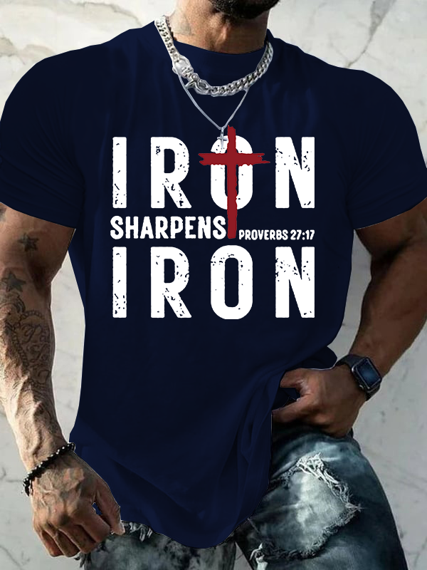 Iron Sharpens Iron Cross Jesus God Christian Cotton T-Shirt