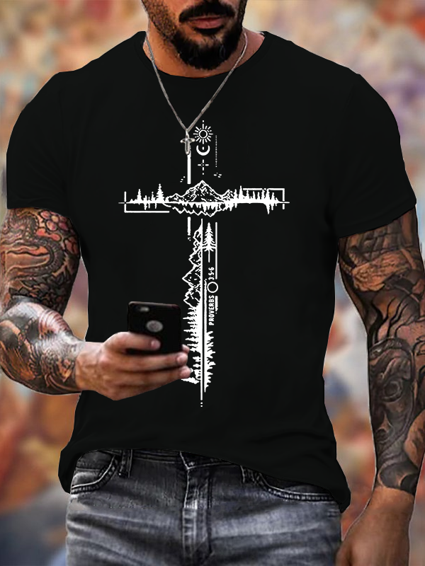 Simple Cross Jesus God Christian Cotton T-Shirt