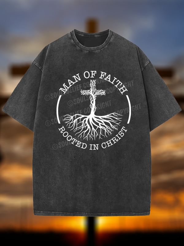 Man of Faith Rooted in Christ Christian Washed T-Shirt