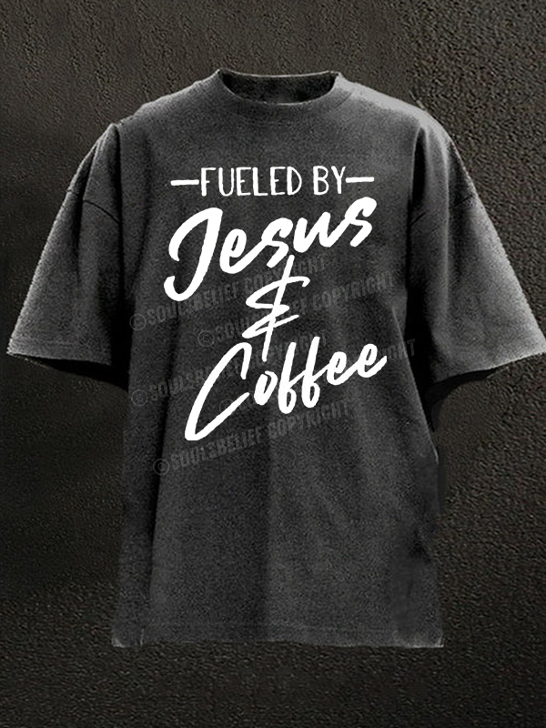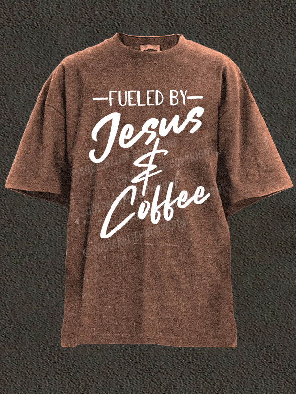 Funny Fueled By Coffee Jesus Christian Washed T-Shirt
