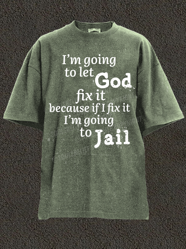 I’m Going to Let God Fix It Because if I Fix It I’m Going to Jail Christian Washed T-Shirt