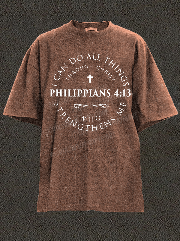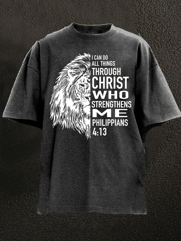 Philippians 4:13 Verse Lion I Can Do All Things Through Christ Christian Washed T-Shirt